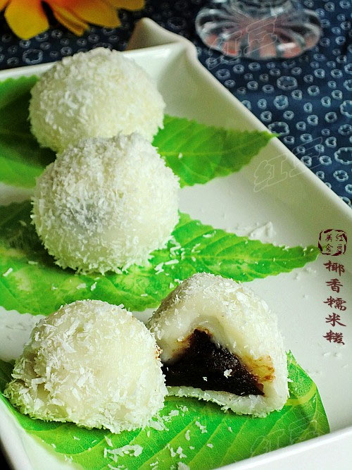 9. 然后滚上椰蓉即可食用。