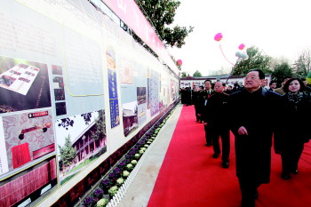 ◥领导、专家、学者正在参观建设中的中国兵学城概况。 记者 廖杰 摄