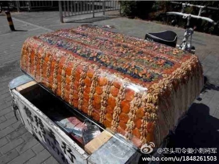 商贩每次都会把核桃糕切割成梯形,看似不大,其实很有分量。 来源:新浪微博