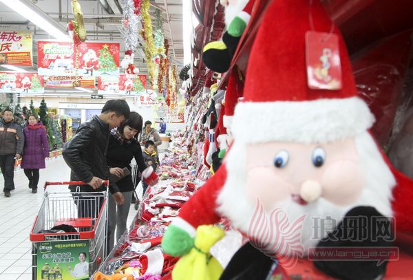 超市开设的圣诞用品专区,吸引了不少顾客驻足选购。