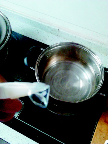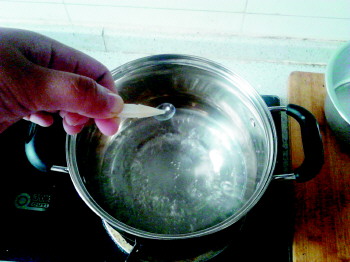 记者先将汤锅内加入清水,置于灶台上加热。等到水完全沸腾后,记者用隐形眼镜夹夹住一只镜片,放在汤锅上方约20厘米处,大量水蒸汽往上冒。大约过了10秒钟,记者感觉到手被蒸得有些发烫,但是镜片没有任何变化。