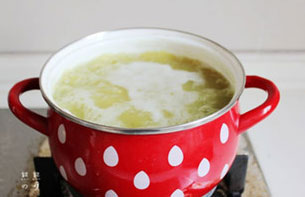 这样,就得到了煮绿豆汤不变色的简单方法——如果家里有反渗透净水器,直接用纯净水煮,就没有问题啦。如果没有,只需在煮绿豆汤的时候加入半勺白醋,或者挤入半勺柠檬汁,就可以让绿豆汤在空气当中较长时间地保持碧绿色泽。