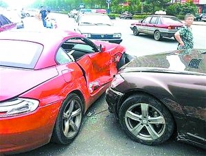 6月,安徽马鞍山,父亲的奔驰和儿子的宝马杠上了。