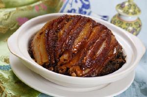 代表菜:梅菜扣肉、青椒炒腊肉。肥肉中的胆固醇和饱和脂肪酸让不少人望而却步,而膳食纤维可以帮助胆固醇从人体排出,减少饱和脂肪酸对人体的伤害,梅菜扣肉和黄豆煨排骨等就符合这一营养原则。亚硝酸盐与蛋白质分解产物在酸性条件下发生反应,易产生亚硝胺类致癌物,而维生素C是抑制亚硝酸盐转变成亚硝胺的最有效物质,因此,尽管腊肉中含有较多的亚硝酸盐,如果搭配富含维生素C的食物一起烹调,便会减少有害物质的生成,其典型代表是青椒炒腊肉。