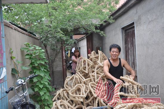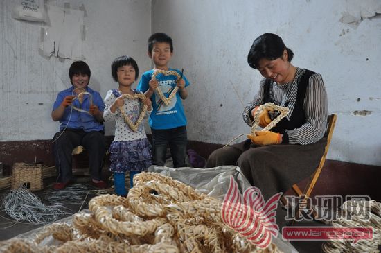 临沭县河滨街的致富能手朱峰波和妻子秦常彩把住宅和小庭院变成了柳编加工场,聚集了金明寓小区和周围住户的编织妇女十七八人,编织一种名叫“桃心”的工艺品,发往青云镇前齐庄的柳编厂再辗转出口荷兰,年创收五六万元。工人们一天能编100多个,月收入平均1500元,编织好手能达到2000多元,谱写了一曲劳动最光荣的乐章。