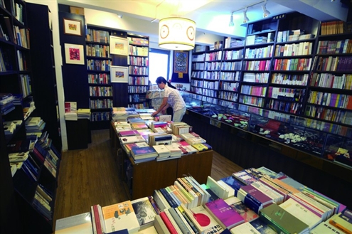 昨天下午,记者来到位于泉乐坊二楼的三联书店,一进门,精致的装饰、典雅的格调以及舒缓的音乐便让记者感觉到这家书店不一样。书店分上下两层,布置得古色古香,满满十几栏书架上摆放的全是人文社科类书籍,颇有些私人藏书楼的味道。
