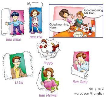 在新的教材里,当年的Hanmeimei变成了Ms han(韩太太)。而她嫁的是一个新人物,名叫HanGang(韩刚)。书本中的“她”造型很时髦,在厨房中忙前忙后,照顾两个孩子用餐。而我们熟悉的Li Lei,成为了一名戴着眼镜的教师,妻子未知。