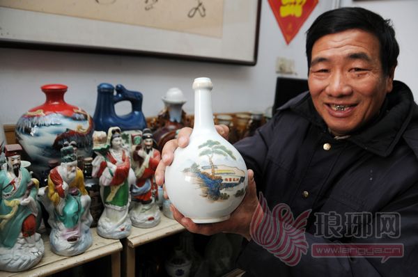 “绘有古代美女的白瓷酒瓶,让人爱不释手;形象生动的八仙过海酒瓶,将人带到那段传奇故事中;多年前茅台小酒瓶上精致的手绘,使人不由得赞叹民间工艺的精湛……”拿着酒瓶,老臧向记者一一介绍起来。