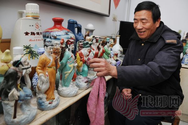 酒瓶到底有多大魅力,竟让老臧乐此不疲?带着这个疑问,26日,记者走进了臧书俊老人的家门。在老臧的家里记者看到,八仙过海、老寿星、自由女神……一个个造型精美的酒瓶让人大开眼界。
