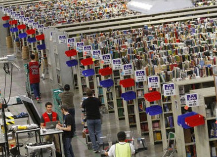 与平台型电商 eBay 仅控制信息流的方式不同,亚马逊集中控制着物流和信息流两条线。亚马逊在北美地区和海外市场租用了总面积超过4千万平方英尺的仓储物流中心,并利用IT手段将货品运输、装卸、下单、配送、退货等整个流程进行数字化管理,这方面管理经营借鉴了沃尔玛,最后,配送环节则采取社会化物流方式,和第三方快递公司FedEx、UPS等物流公司合作,将商品送达用户手中。