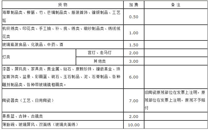 代理点指明货物加费费率表