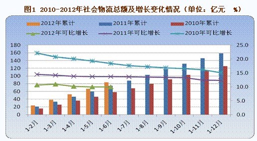 中国物流与采购联合会发布的《2012年上半年物流运行情况分析》显示,上半年,我国物流运行总体保持适度增长。社会物流总额较快增长,增速缓中趋稳;物流业增加值稳步增长;物流业固定资产投资增速有所提高。但社会物流总费用居高不下,反映宏观经济运行的质量和效率偏低;物流企业成本上升,效益持续下滑,行业发展的后劲和活力受到影响,对这些问题仍要引起密切关注。